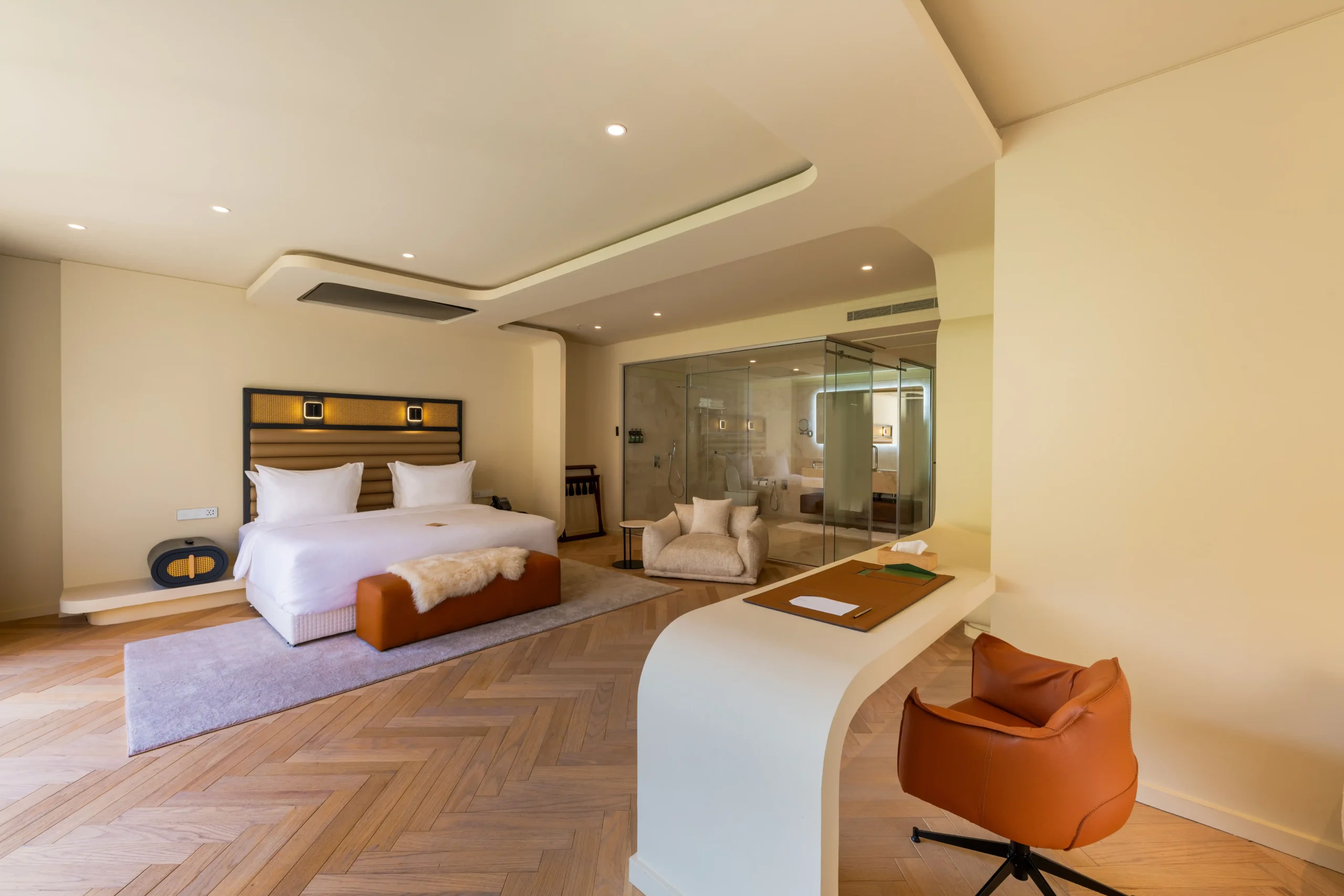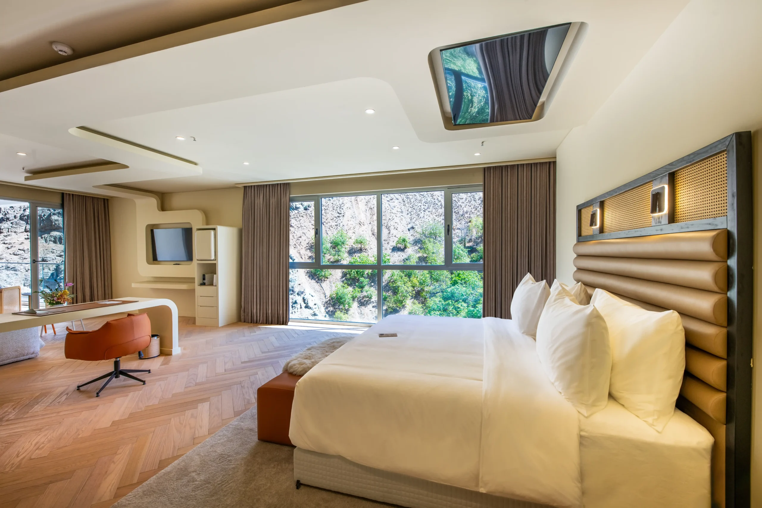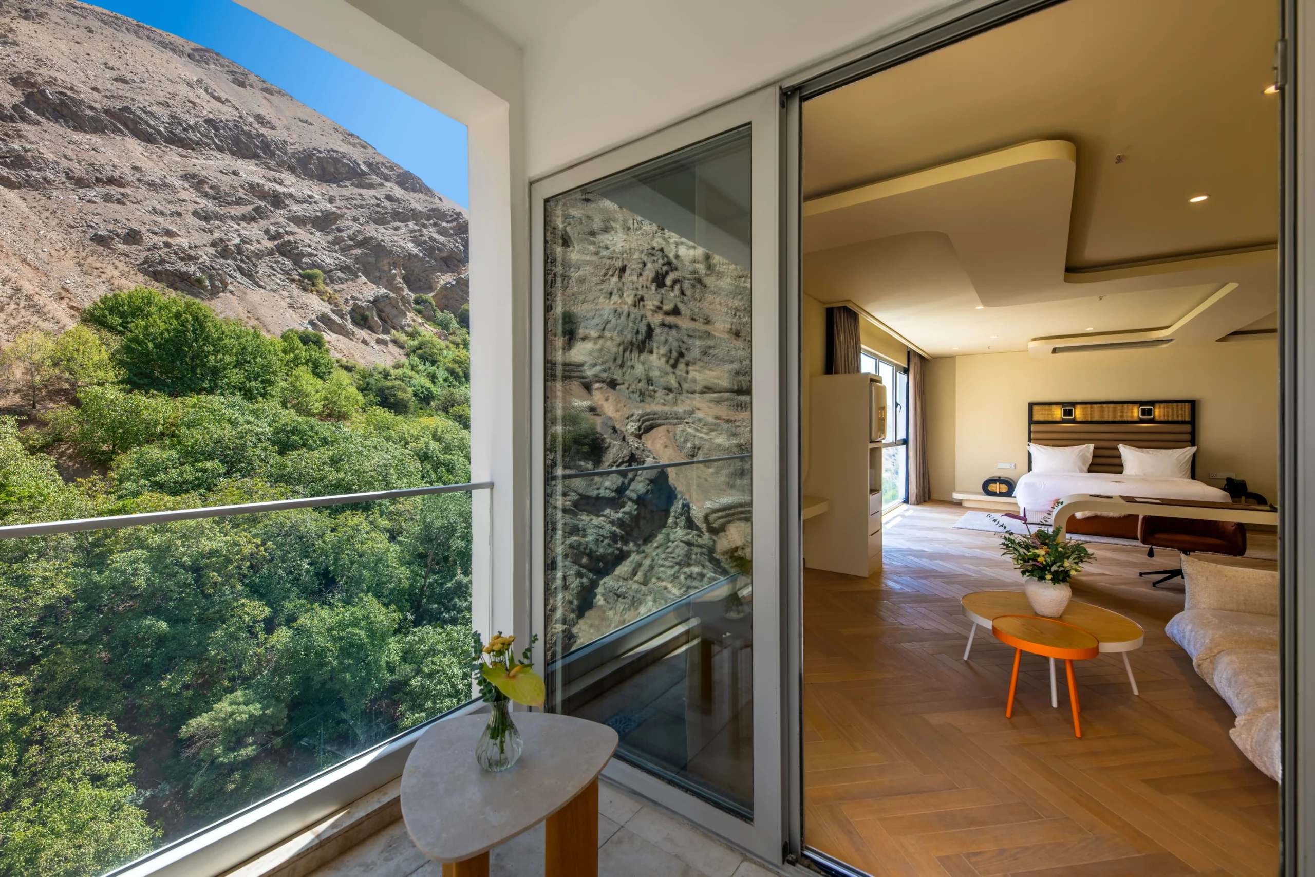 Our largest and most exclusive suite opens onto a balcony with a jacuzzi overlooking the mountains, sound of river and roaming deers; untouched by city noise or road views. Inside, you’ll find a spacious TV lounge, a romantic bathroom, and every detail designed for comfort, whether for a weekend escape or an extended stay, this mountain view suite is the perfect hideaway for total relaxation with someone special or your family.